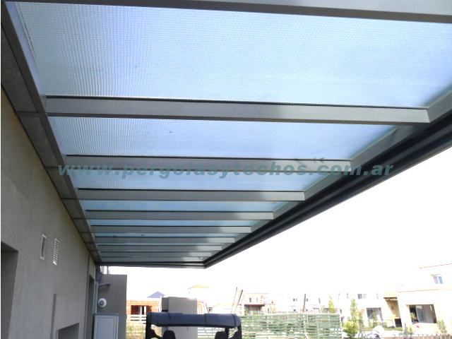 Venta techos de vidrio y policarbonato para cerramiento de patios, parques y quinchos. Contamos con venta de pergolas antigranizo y cerramientos de vidrios para chocheras de auto.